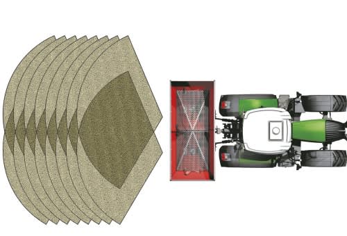 - Akkurates Streubild: Streubild mit Doppelter Überlappung bringt bisher unerreichte Genauigkeit. 8 Streuschaufeln sorgen für einen konstanten Düngerfluss. Dies ist besonders wichtig für eine hohe Streuleistung und Fahrgeschwindigkeit